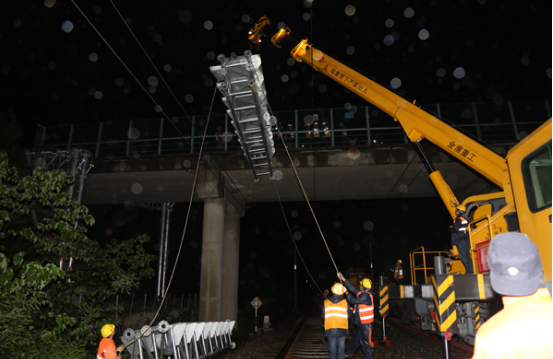 (記者 ???/span> 通訊員 雒亞琴 馮承德)5月7日晚22:40封鎖施工命令下達(dá),在中鐵武漢電氣化局上海分公司合寧鐵路防災(zāi)項(xiàng)目部滬蓉線12號(hào)橋施工現(xiàn)場(chǎng),60余名施工人員迅速按照既定程序和操作規(guī)程開始了緊張作業(yè),軌道車吊起十余噸重的硬橫梁旋轉(zhuǎn)、對(duì)位……。