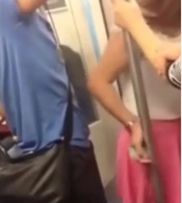 本來很正常的一件事,可是沒一會兒男子就開始了不軌舉動,她用身上的包在女孩身后來回蹭。