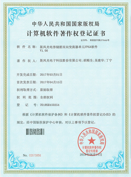 近日,由新風(fēng)光電子科技股份有限公司(以下簡(jiǎn)稱新風(fēng)光公司)自主開(kāi)發(fā)的2項(xiàng)軟件創(chuàng)新成果,順利通過(guò)國(guó)家版權(quán)局的審查,獲得軟件著作權(quán)登記證書。這兩項(xiàng)軟件創(chuàng)新成果分別為:《儲(chǔ)能雙向變流器DSP軟件V1.00》(登記號(hào):2018SR450347)、《新風(fēng)光電容儲(chǔ)能雙向變流器單元FPGA軟件V1.00》(登記號(hào):2018SR450354)。截至目前,新風(fēng)光公司軌道交通產(chǎn)品共獲得9項(xiàng)計(jì)算機(jī)軟件著作權(quán)登記證書。