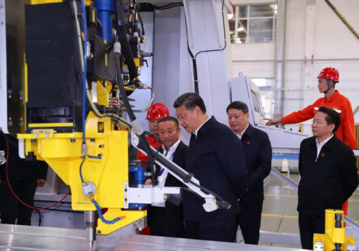 習近平總書記在遼寧忠旺集團生產制造車間了解企業(yè)發(fā)展和轉型升級等情況。(新華社記者謝環(huán)馳拍攝)