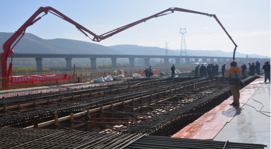 楊旗互通楊旗大橋現(xiàn)澆梁澆筑現(xiàn)場。