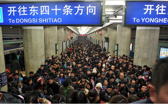 圖2 北京地鐵擁擠的局面、不忍目睹