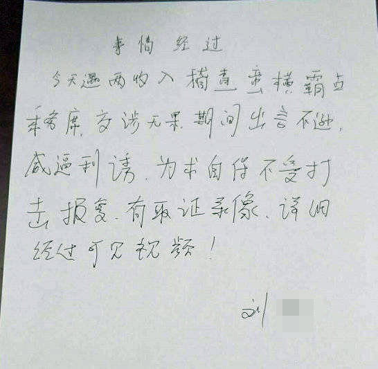 在一份列車司機(jī)手寫(xiě)的關(guān)于此事的情況說(shuō)明上,列車司機(jī)劉先生表示,"稽查蠻橫霸占乘務(wù)席,交涉無(wú)果,期間出言不遜,威逼利誘,為求自保不受打擊報(bào)復(fù),有取證錄像。"