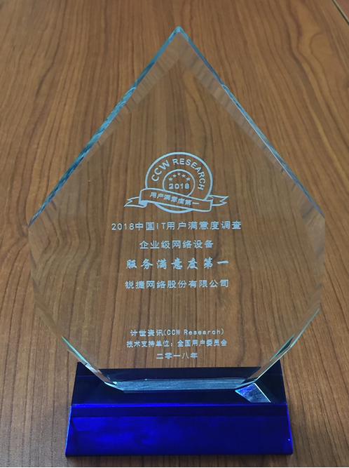 在國家工業(yè)信息安全發(fā)展研究中心和全國用戶委員會指導下,由計世資訊(CCW Research)主辦的第十七屆中國IT用戶滿意度大會于2019年1月14日在北京正式召開。憑借領(lǐng)先的專業(yè)技術(shù)實力和廣受用戶認可的服務(wù)能力,銳捷網(wǎng)絡(luò)連續(xù)三年榮獲“企業(yè)級網(wǎng)絡(luò)設(shè)備服務(wù)滿意度第一”的榮譽,在業(yè)界樹立了一面“看得見的好服務(wù)”旗幟。
