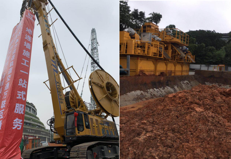 “吳山廣場站地連墻施工厚度為800mm、槽深不超40m,普通的旋挖鉆機(jī)未能滿足項(xiàng)目成槽精度與成槽深度的要求,且吳山廣場站下方管道復(fù)雜,地質(zhì)堅(jiān)硬、工期緊張、環(huán)保要求高等因素,導(dǎo)致施工頗有難度。為此,我們配備了徐工基礎(chǔ)XTC80/85雙輪銑槽機(jī),務(wù)求高效品質(zhì)地完成項(xiàng)目施工?!本栏呖葡嚓P(guān)負(fù)責(zé)人表示。
