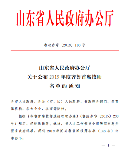 據(jù)悉,齊魯首席技師是具有良好職業(yè)道德、高超技能水平、豐富實踐經驗、業(yè)績貢獻突出,在全省乃至全國本行業(yè)(領域)影響帶動作用大、得到廣泛認可,經選拔認定的優(yōu)秀高技能人才。在4年管理期內,入選者享受省政府津貼,并被納入山東省高層次人才庫。