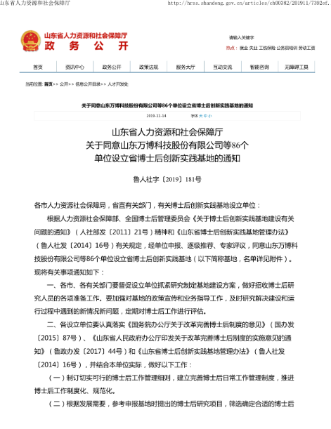 近日,從山東省人力資源和社會保障廳傳來喜訊,經(jīng)單位申報、逐級推薦、專家評議等程序,同意包括新風光電子科技股份有限公司在內的86家單位設立省博士后創(chuàng)新實踐基地。