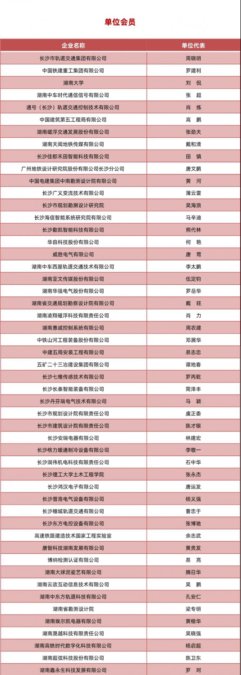 中國工程院院士丁榮軍,中國工程院院士陳湘生,長沙市人大常委會副主任、先進軌道交通裝備產(chǎn)業(yè)鏈鏈長袁黎明,北京交通大學土木建筑工程學院院長、教授高亮,國防科技大學智能科學學院磁浮交通重點項目總師、研究員龍志強,同濟大學國家磁浮交通工程技術研究中心研究員林國斌,全國工程勘察設計大師、廣州地鐵設計研究院總工程師史海歐,市發(fā)改委、市工信局、市民政局、市住建局、市交通局、市科協(xié)、長沙經(jīng)開區(qū)、市軌道交通集團等有關領導、51家單位會員代表和37名個人會員出席成立大會。