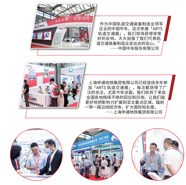 本屆展會預(yù)計(jì)將吸引來自全球超過200+行業(yè)龍頭企業(yè)和上下游企業(yè)參展,期待您的蒞臨。ARTS上海國際軌道展將繼續(xù)肩負(fù)使命,為行業(yè)搭建權(quán)威專業(yè)的國際合作交流平臺,共同推動推動中國軌道交通行業(yè)國際化、全球化進(jìn)程,2022與您相約!