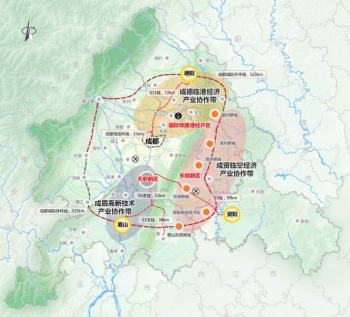 無獨有偶,就在8月,四川市域鐵路成德S11線、成眉S5線、成資S3線被列為《成德眉資同城化暨成都都市圈交通基礎設施互聯(lián)互通三年實施方案(2020—2022年)》重點建設項目,是成都都市圈市域鐵路基礎骨架。當前,成都都市圈正在統(tǒng)籌布局以成都為中心樞紐的多層次多制式軌道交通網絡,推動干線鐵路、城際鐵路、市域(郊)鐵路和城市軌道交通“四網融合”,著力構建軌道交通一小時通勤圈。