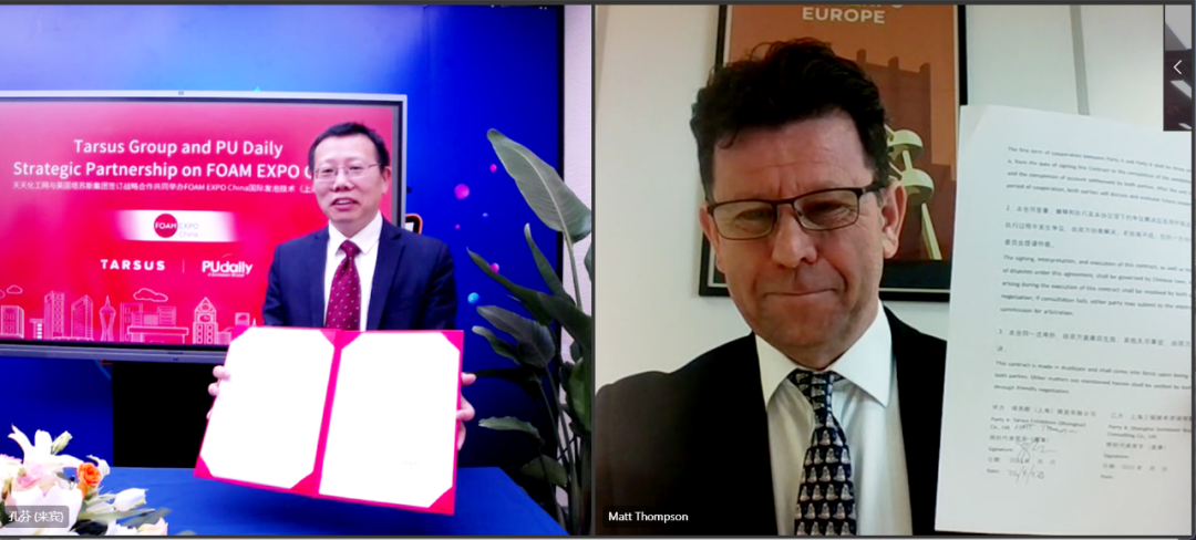 2023年4月26日,英國塔蘇斯集團Tarsus Group與天天化工網(wǎng)戰(zhàn)略合作簽約儀式于線上直播舉行。塔蘇斯集團Tarsus Group項目總監(jiān)Matt Thompson與天天化工網(wǎng)總經(jīng)理程國穩(wěn)共同出席儀式,分別代表雙方簽署戰(zhàn)略合作協(xié)議。