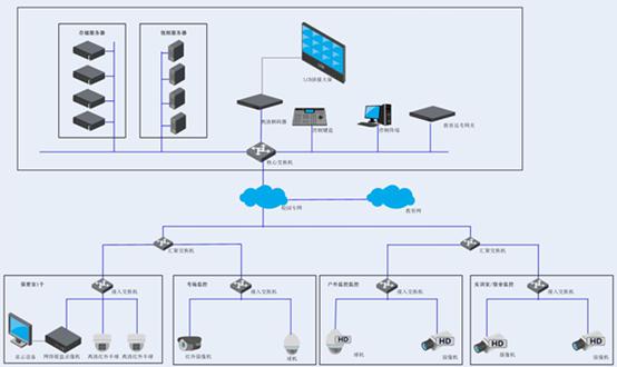 監(jiān)控中心主要可實(shí)現(xiàn)視頻圖像的接入、存儲(chǔ)、上墻顯示以及客戶端訪問轉(zhuǎn)發(fā)。其中,視頻圖像的接入主要是可將全校范圍的視頻進(jìn)行統(tǒng)一的接入管理;通過部署在監(jiān)控中心的NVR設(shè)備對(duì)錄像進(jìn)行存儲(chǔ);通過解碼器及圖像拼接控制器及顯示設(shè)備實(shí)現(xiàn)將前端視頻信號(hào)進(jìn)行任一窗口大小進(jìn)行顯示;同時(shí),利用流媒體服務(wù)器可滿足客戶端實(shí)時(shí)監(jiān)看及錄像回放等功能。