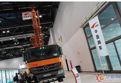 在眾多參展企業(yè)中,中國南車株洲所旗下的北京南車時代機車車輛機械有限公司(簡稱“南車北京時代”)也攜帶最新的全液壓UH3型多功能車載鉆機參展。站在展會現(xiàn)場任何位置,只要抬頭一望,就能看到南車北京時代UH3型車載鉆機的橙色臂架,在鉆機臂架的頂端飄揚著一面有“中國南車”標(biāo)識的旗幟。