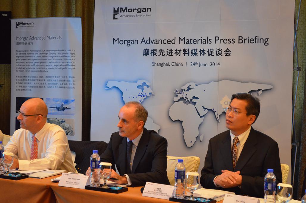 (從左至右:摩根先進材料亞洲區(qū)總裁Ian Robb,全球首席執(zhí)行官 Mark Robertshaw, 中國區(qū)董事總經理陳振聲)