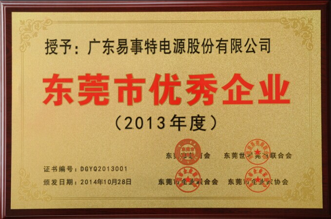 10月28日,2014年?yáng)|莞市企業(yè)家活動(dòng)日暨“2013年度優(yōu)秀企業(yè)、優(yōu)秀企業(yè)家評(píng)選表彰大會(huì)”活動(dòng)在會(huì)展國(guó)際大酒店隆重舉行,市委副書(shū)記、市長(zhǎng)袁寶成、省企業(yè)聯(lián)合會(huì)相關(guān)領(lǐng)導(dǎo)參加了表彰活動(dòng)。易事特憑借領(lǐng)先的技術(shù)實(shí)力、高速增長(zhǎng)的經(jīng)營(yíng)業(yè)績(jī)和顯著的品牌影響力,榮獲2013年度“東莞市優(yōu)秀企業(yè)”稱號(hào),充分肯定了易事特在東莞市經(jīng)濟(jì)社會(huì)發(fā)展中的地位和作用。