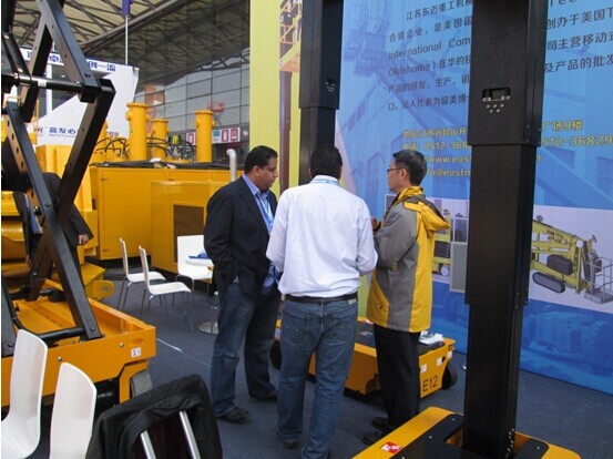 這次的展會,更進一步擴大了東邁重工的品牌宣傳力度,吸引了更多的國際國內(nèi)客戶關(guān)注安全有效的高空作業(yè)平臺機械,其中荷蘭有3家經(jīng)銷商在展會現(xiàn)場前來洽談代理,國內(nèi)尚不發(fā)達的高空作業(yè)區(qū)域也有很多客戶前來咨詢產(chǎn)品。同時,十余家國內(nèi)外媒體風(fēng)雨無阻,先后對公司創(chuàng)始人總經(jīng)理的周振東博士以及公司的國際先進技術(shù)和客戶關(guān)心話題進行采訪報道。