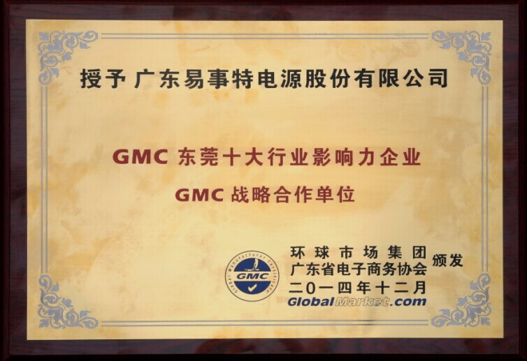 在本次GMC優(yōu)質制造商總裁峰會暨年度頒獎典禮上,易事特憑借領先的技術實力、高速增長的經(jīng)營業(yè)績和顯著的品牌影響力,榮獲2014年度“GMC東莞十大行業(yè)影響力企業(yè)GMC戰(zhàn)略合作單位”稱號,充分肯定了易事特長期以來的發(fā)展成績,彰顯了易事特在東莞市經(jīng)濟社會發(fā)展中的地位和作用。同時,此次獲獎將有助于易事特借助環(huán)球市場這一國際高端電子商務平臺進行品牌展示和宣傳,助力公司全球市場拓展。