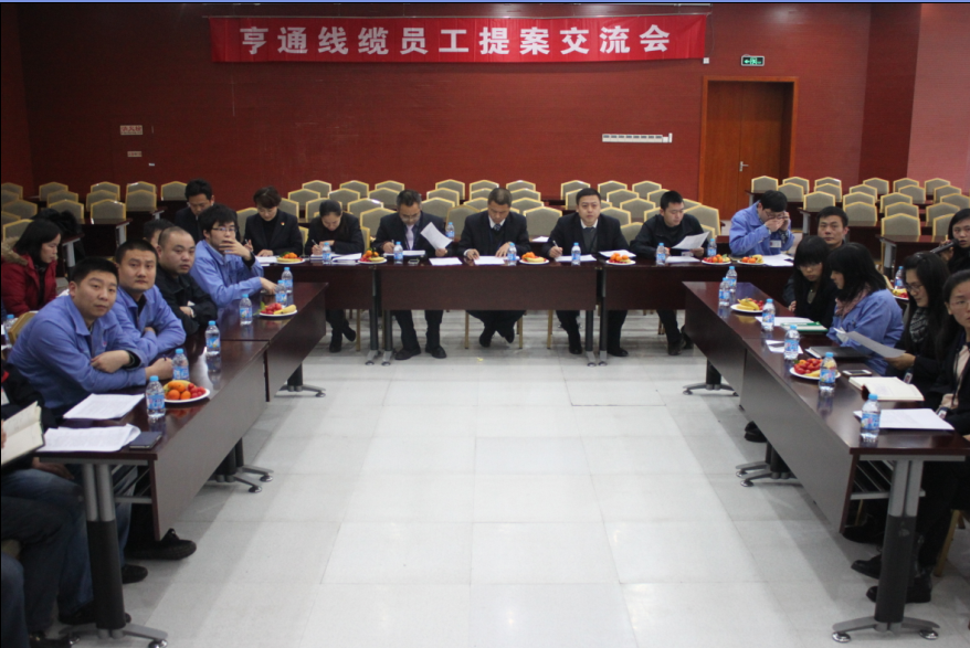 2015年1月15日下午,江蘇亨通線(xiàn)纜科技有限公司(以下簡(jiǎn)稱(chēng)亨通線(xiàn)纜)在亨通光電線(xiàn)纜產(chǎn)業(yè)園新辦公大樓二樓培訓(xùn)大廳組織召開(kāi)2014年第四季度優(yōu)秀提案交流會(huì),亨通線(xiàn)纜生產(chǎn)副總助理林磊,技術(shù)部經(jīng)理崔久德、王國(guó)權(quán)等8位評(píng)委及30余位提案員工代表參加本次會(huì)議。