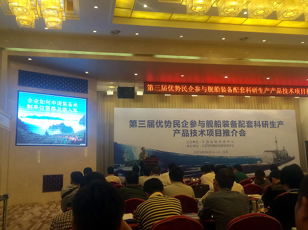 在為期兩天的會議中,與會的軍地專家們圍繞著“2015-2020年中國艦船行業(yè)發(fā)展趨勢與前景”、“十三五武器裝備發(fā)展對高新技術(shù)及配套產(chǎn)品的需求方向”、“軍需用品行業(yè)市場規(guī)模及增長趨勢”、“深藍戰(zhàn)略推動海軍裝備升級為艦船配套企業(yè)帶來的新機遇”等方面進行了精彩的主題演講,并就海軍裝備訂購、艦船技術(shù)服務(wù)等熱點話題進行交流。專家們一致表示,將為參會企業(yè)進入我國軍工配套領(lǐng)域提供咨詢及市場拓展等服務(wù),并鼓勵優(yōu)秀民企積極參與武器裝備配套科研生產(chǎn),切實推進軍需保障社會化,實現(xiàn)軍民融合深度發(fā)展。