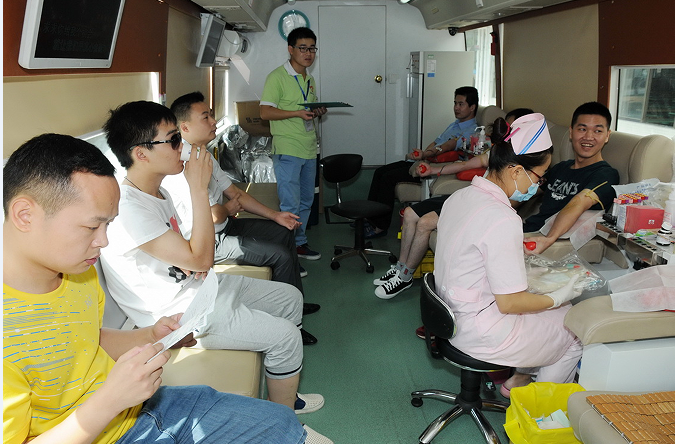 上午八點,獻血車開進了易事特公司。一切準備工作完畢后,獻血員工在市中心血站工作人員的指導(dǎo)下,認真填寫獻血登記表、測量血壓、抽血化驗,經(jīng)血液檢驗合格后進行無償獻血。獻血隊伍中既有工作多年的老同志,也有剛剛參加工作的新員工。獻血過程中,不斷有尚未報名的員工咨詢并參與到奉獻愛心的隊伍中來。曾經(jīng)先后參加了百余次無償獻血并榮獲全國無償獻血金獎的朱艷召也來到了獻血活動現(xiàn)場,他忙前忙后,既當志愿者,又客串心理咨詢師,對現(xiàn)場的獻血員工進行了及時、耐心的心理干預(yù)和輔導(dǎo),使本次獻血活動在一個輕松、歡樂的氛圍中進行。