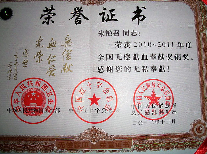 三年獻(xiàn)血上百次,榮獲全國無償獻(xiàn)血金獎(jiǎng)
