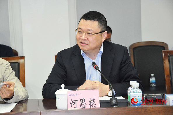 易事特集團(tuán)股份有限公司董事長(zhǎng)何思模地向記者介紹機(jī)器換人的好處。(人民網(wǎng) 賈興鵬攝)
