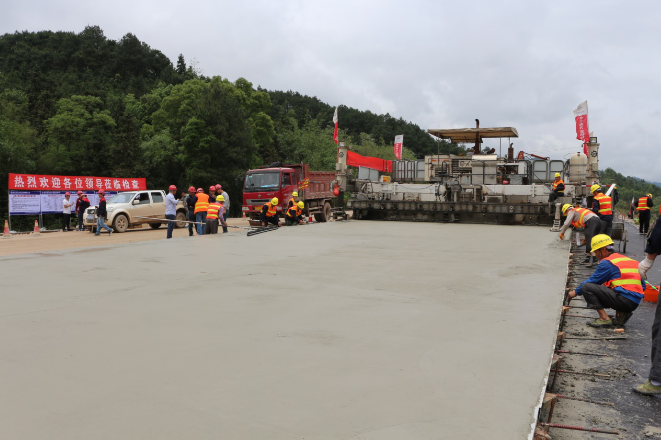 通過近8個小時緊張而有序的施工完成193.5米試驗段,對試拌、試鋪兩個階段各項數據、工序及流程進行全面監(jiān)測,確保整套施工工藝流程完全符合打造一條高強度,抗滑抗沖擊的一級高速路,為全線路面鋪設提供符合當地氣候和適宜溫差環(huán)境的施工數據,為混凝土路面施工大規(guī)模采用滑模攤鋪施工積累寶貴的經驗,更為年內實現全線竣工通車贏得有效的施工保證。