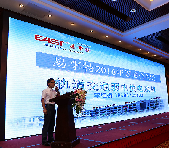 易事特集團(tuán)電力系統(tǒng)、軌道交通事業(yè)部副總經(jīng)理李紅橋高級(jí)工程師針對(duì)國內(nèi)及廣西的軌道交通市場(chǎng)規(guī)模進(jìn)行了深入分析,并對(duì)易事特UPS供電系統(tǒng)、EPS供電系統(tǒng)、直流操作電源系統(tǒng)、通信電源、智能配電柜、電池巡檢儀的技術(shù)優(yōu)勢(shì)及其具體應(yīng)用進(jìn)行闡述。