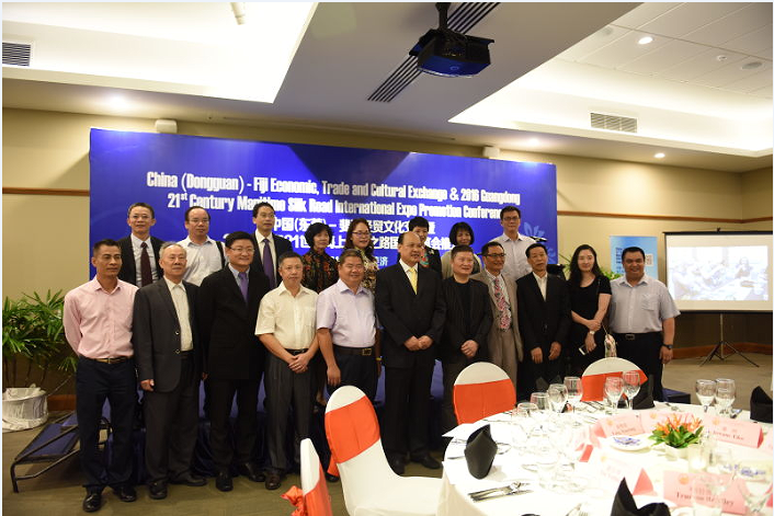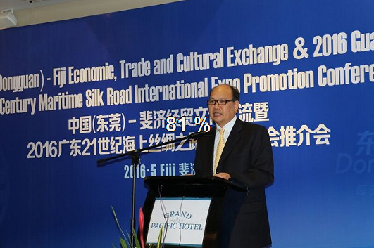 2016年5月13日,東莞代表團首先抵達斐濟,并在首都蘇瓦舉行了“中國(東莞)-斐濟經(jīng)貿(mào)文化交流”暨“2016廣東21世紀海上絲綢之路國際博覽會推介會”。
