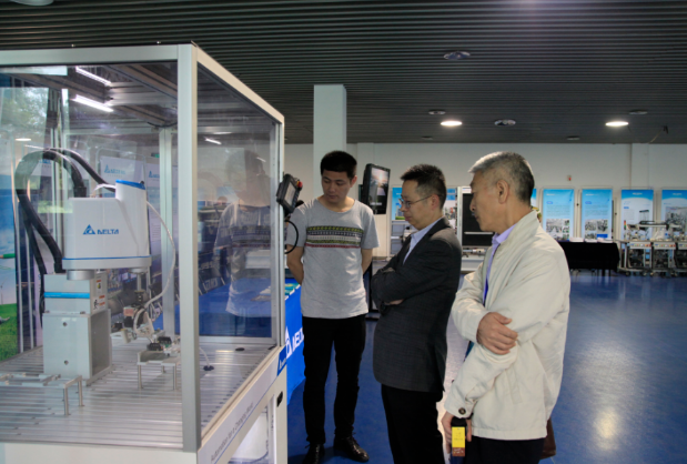 圖2 大賽組委會(huì)專家參觀臺(tái)達(dá)SCARA工業(yè)機(jī)器人DRS40L系列
