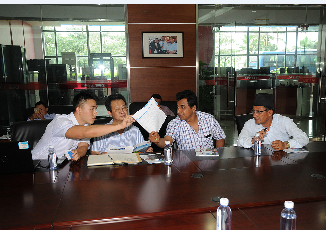 5月29日,在國家商務(wù)部中國機(jī)電商會主任常忠、機(jī)電商會顧問閆桂強、機(jī)電商會主管任繼東以及非洲東部南部國家聯(lián)盟COMESA特使武捷安、特使助理胡美珍等領(lǐng)導(dǎo)陪同下,商務(wù)部發(fā)展中國家機(jī)械行業(yè)官員及企業(yè)家研修班24名成員蒞臨易事特參觀考察。他們來自孟加拉、尼泊爾、伊拉克、巴勒斯坦、加納、克羅地亞、巴基斯坦、南蘇丹等8國,受到易事特副董事長徐海波博士、國際貿(mào)易部何宇、陳大教等熱情接待,并進(jìn)行了深入廣泛的交流。