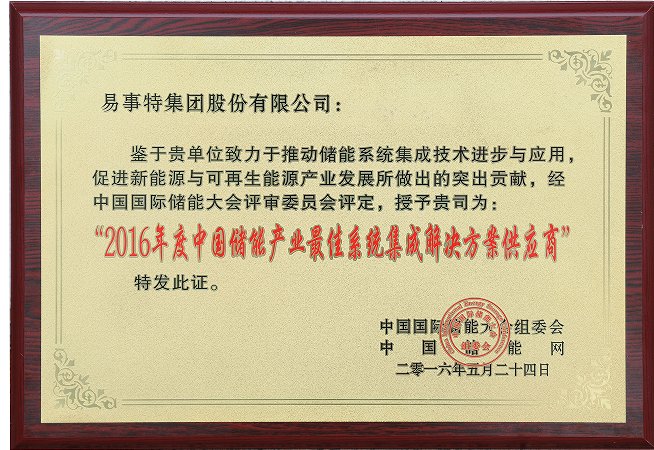 易事特副董事長徐海波博士表示,被授予“2016年度中國儲能產(chǎn)業(yè)最佳系統(tǒng)集成系統(tǒng)解決方案供應(yīng)商”榮譽(yù)稱號,是對易事特儲能系統(tǒng)集成解決方案專業(yè)能力的高度肯定,也是行業(yè)給予的最高褒獎。易事特將以此為契機(jī),不驕不躁、砥礪前行,為儲能產(chǎn)業(yè)的健康持續(xù)發(fā)展再作新貢獻(xiàn)!