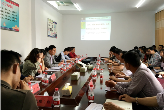會上,青島藍色硅谷城際軌道交通工程09標項目總工以PPT形式介紹了項目從開工到竣工過程中工程資料的整理歸檔范圍、執(zhí)行標準,并對竣工資料歸檔的組卷順序、整理標準、竣工圖編制、質(zhì)量要求進行了詳細的講述。在項目部相關(guān)人員的陪同下,與會人員參觀了青島硅谷項目09標的資料檔案室,察看了竣工資料的整理裝訂樣本、施工資料組卷樣本及竣工圖折疊樣本。青島市城建檔案管專家陳薇老師對9標段竣工檔案整理工作進行了點評,認為9標段竣工檔案整理工作符合青島市城建檔案標準和要求,可以作為全線工程竣工檔案示范點項目。
