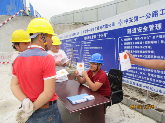 (記者 ???通訊員 邢朝峰)6月16日下午,中交一公局華祥公司凱松水庫(kù)輸水工程項(xiàng)目經(jīng)理部在施工現(xiàn)場(chǎng)舉辦2016年“6.16”安全生產(chǎn)宣傳咨詢?nèi)栈顒?dòng)。