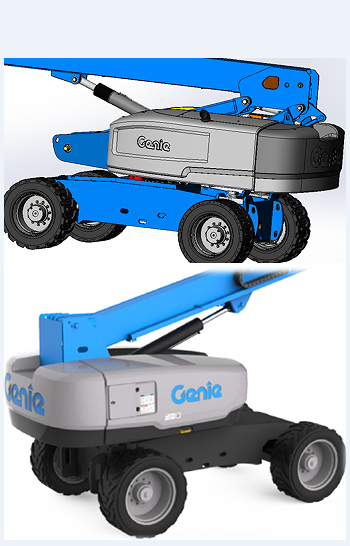 此次Genie ?S?-80自行式直臂型高空作業(yè)平臺的全新設(shè)計語言主要體現(xiàn)在底盤和外殼兩個部分。首先,底盤和外殼的邊緣改為使用代表穩(wěn)固和可靠的黑色。全新設(shè)計的外殼形狀可以減緩意外沖擊,頂面設(shè)計還有助于防止雜物和水沉積,延長外殼的使用壽命,使其更加堅固耐用與美觀。產(chǎn)品設(shè)計的統(tǒng)一性能夠使產(chǎn)品脫穎而出、更具競爭力。不僅如此,外殼上向下凸起的邊緣設(shè)計是吉尼獨一無二的“視覺標(biāo)志”。