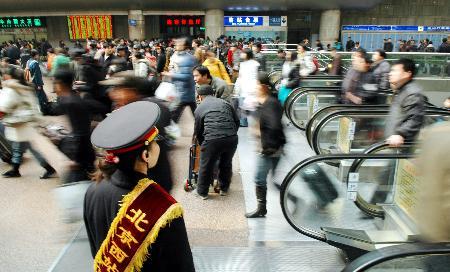 (圖:北京西站大批旅客乘車出行)
