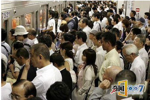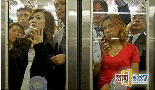 可憐的女孩,被貼在玻璃上。日本的婦女地位很低,因此擠地鐵時男人沒有謙讓的習(xí)慣。因此七十年代發(fā)生了好幾起婦女被擠傷事件。由于過于擁擠,地鐵為了保護(hù)女士和兒童專門開設(shè)了婦女專用車廂。后來這個車廂撤銷了。