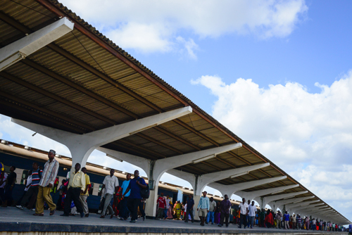 2016年5月31日,乘客走出位于坦桑尼亞的坦贊鐵路達(dá)累斯薩拉姆車站。坦贊鐵路東起東非坦桑尼亞港口城市達(dá)累斯薩拉姆西至南部非洲贊比亞中部的卡皮里姆波希,全長(zhǎng)1860.5公里,由中國(guó)政府提供無息貸款援建。它是中國(guó)最大援外成套項(xiàng)目之一,中國(guó)曾先后派遣工程技術(shù)人員5萬人次。新華社記者 翟健嵐 攝
