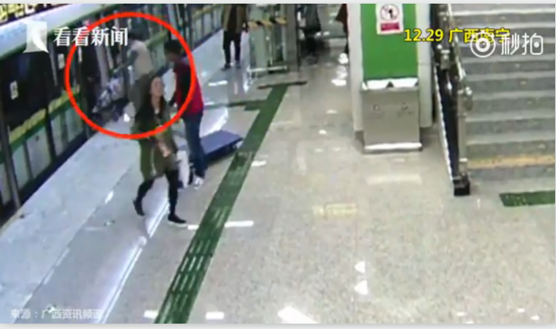 12月29日上午9點(diǎn)50分,在廣西南寧,一輛地鐵列車抵達(dá)民族廣場(chǎng)站,就在車門即將關(guān)閉時(shí),一名男子推著一輛嬰兒車沖了上去,被關(guān)閉的車門給夾住了。