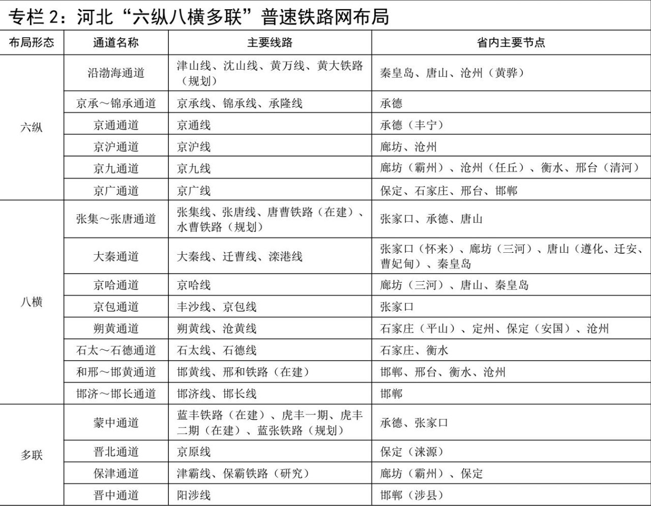 根據(jù)區(qū)域貨物運輸需求,以秦皇島港、唐山港、黃驊港及京津產(chǎn)業(yè)轉(zhuǎn)移承載地、產(chǎn)業(yè)聚集區(qū)、商貿(mào)物流基地為重點,有序推進集疏港鐵路、資源開發(fā)性鐵路、支線鐵路、鐵路專用線及鐵路物流基地建設,合理布局鐵路貨運服務設施,強化“六縱八橫多聯(lián)”網(wǎng)絡架構(gòu),形成以港口后方鐵路通道為主,疏港型、園區(qū)型支線鐵路為輔,干支有效銜接的普速鐵路網(wǎng),提高對河北發(fā)展沿海經(jīng)濟、加快經(jīng)濟轉(zhuǎn)型升級的支撐保障作用。